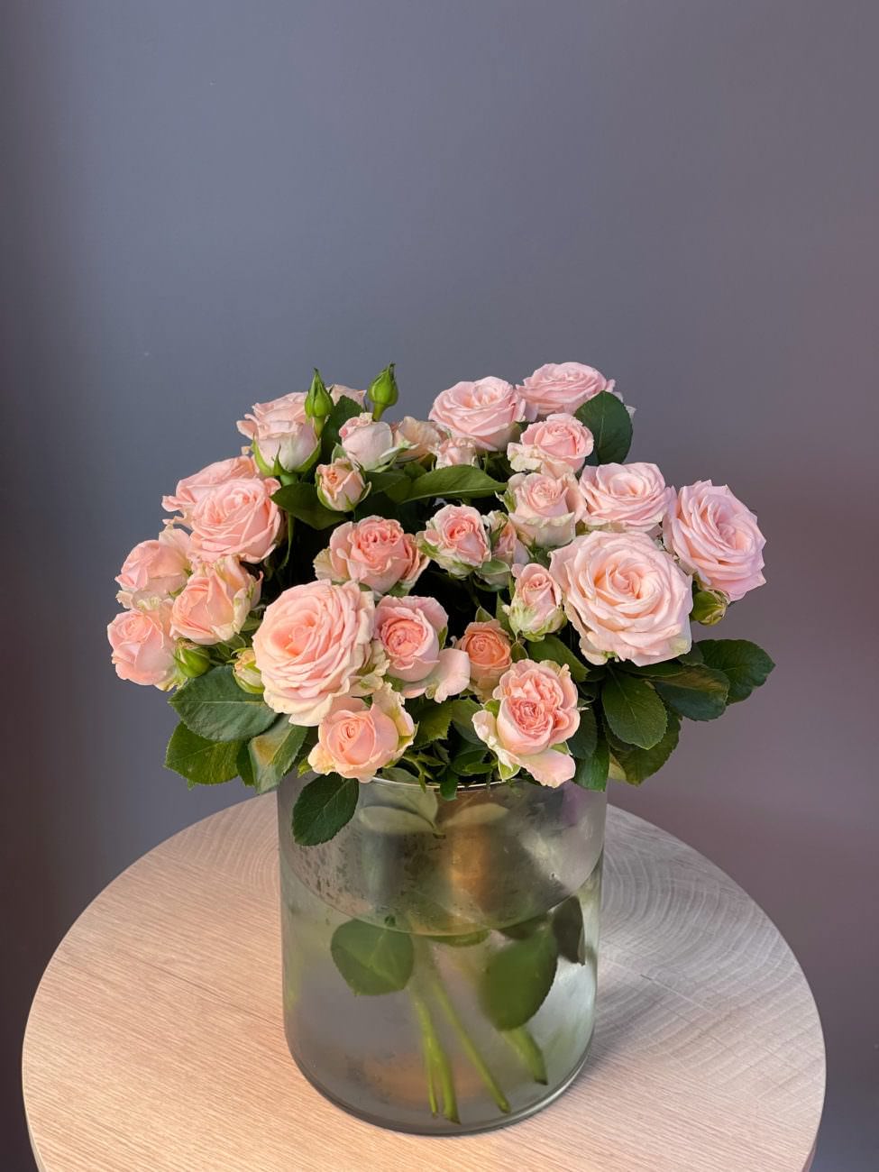 Каждый букет собирает флорист вручную под конкретный заказ. Не используем шаблонные композиции — только индивидуальный подбор по стилю и сочетанию оттенков